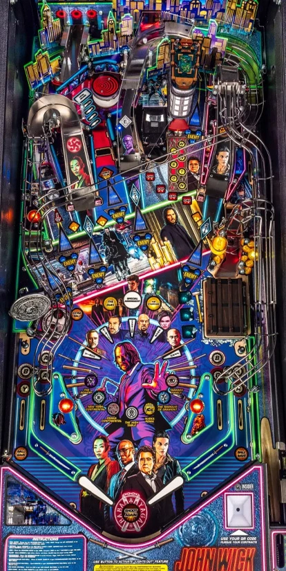 Dans le flipper John Wick Premium de Stern, incarnez le légendaire assassin en quête de liberté face à son passé tumultueux. Préparez-vous à des courses-poursuites palpitantes et des dérapages ultra-dynamiques sur un plateau de jeu inspiré des lieux cultes de la franchise. Découvrez des environnements emblématiques comme l’hôtel Continental de New York et le Red Circle Club, le tout sublimé par une représentation lumineuse saisissante de la skyline de New York.